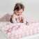 Extra tjock sherpapläd med hjärter och imiterad lammull på baksidan håller babyn god och varm. Vackert med namnet broderat.